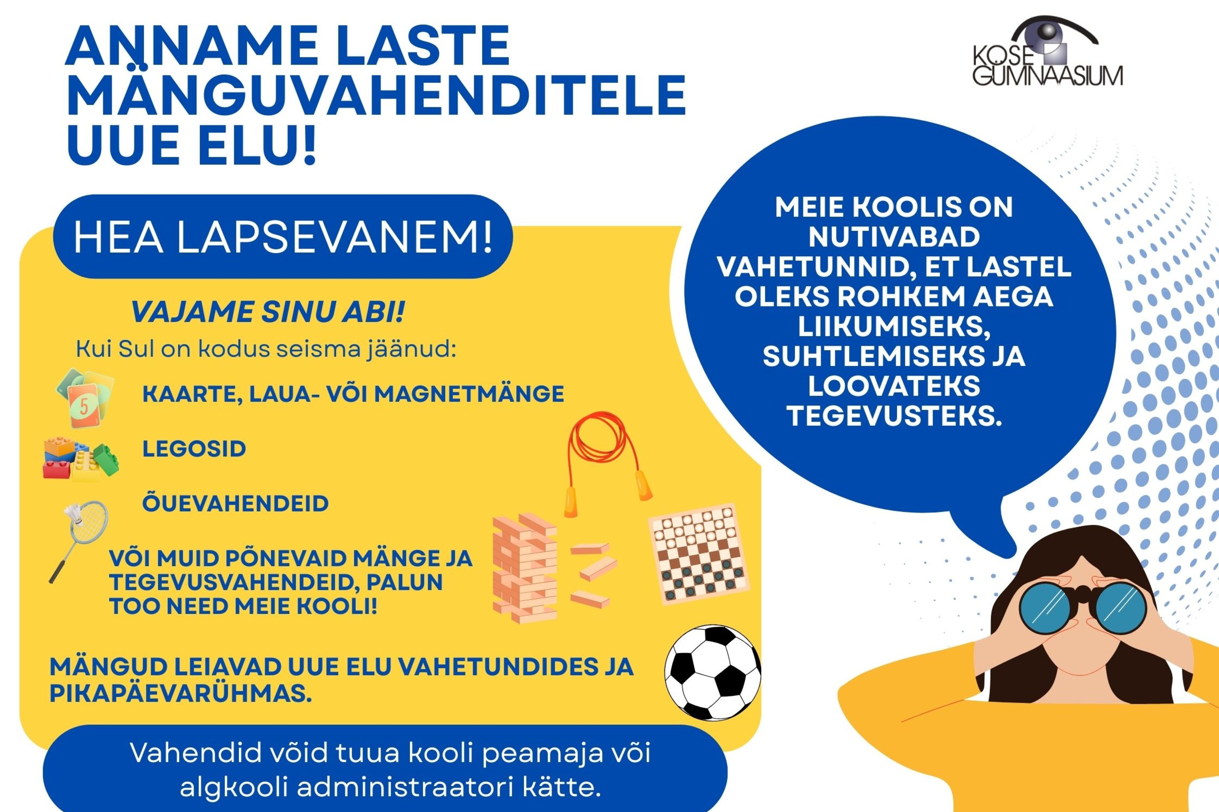 Mängud leiavad uue elu klassides, pikapäevarühmas ja vahetundides, pakkudes lastele rohkem nutivabu, sotsiaalseid ja loovaid tegevusi.