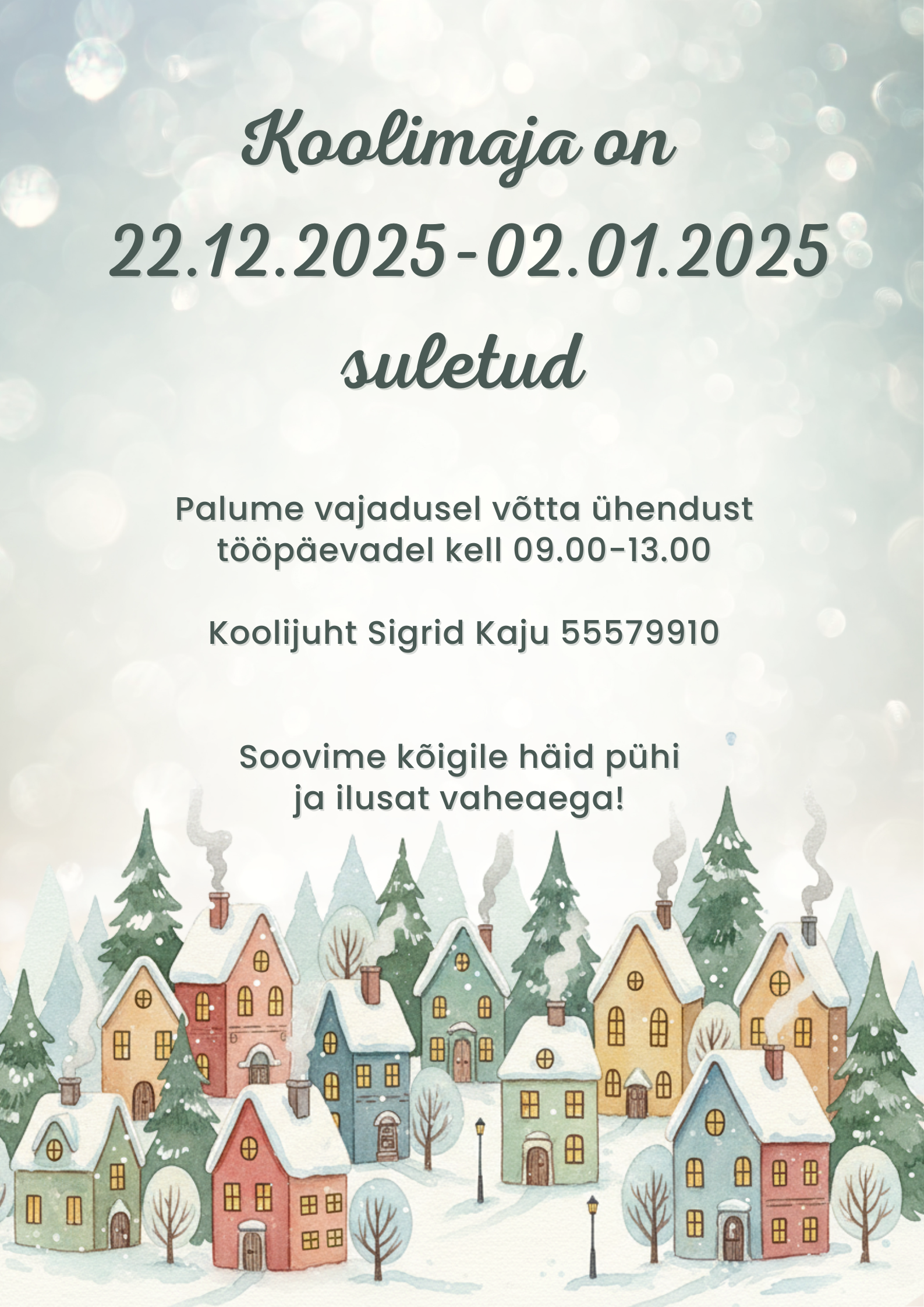 Seoses saabuva jõuluaja ja talvise koolivaheajaga on koolimaja suletud ajavahemikus 22.12.2025–02.01.2026.