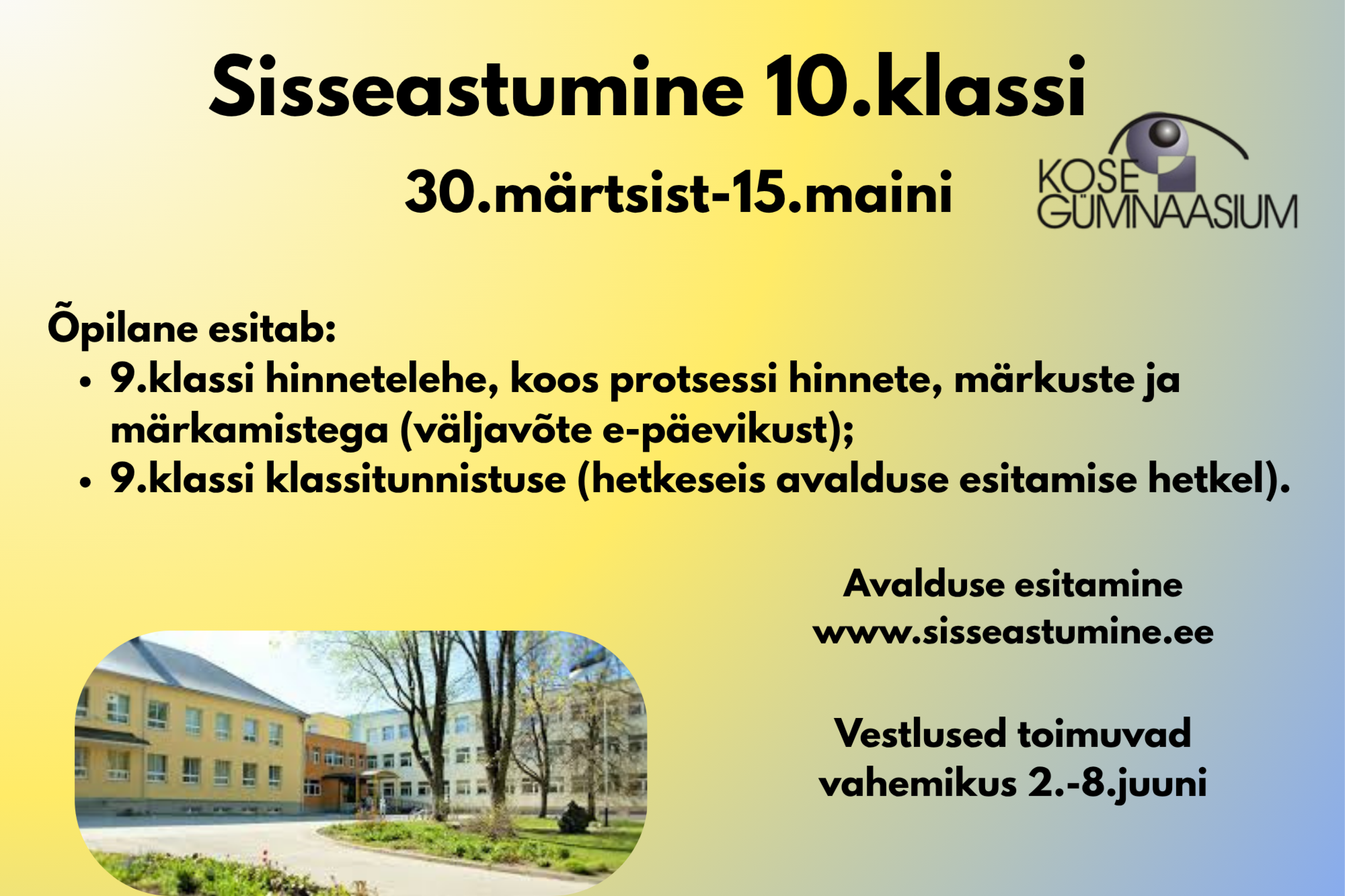 Kose Gümnaasium kutsub kandideerima 10. klassi.