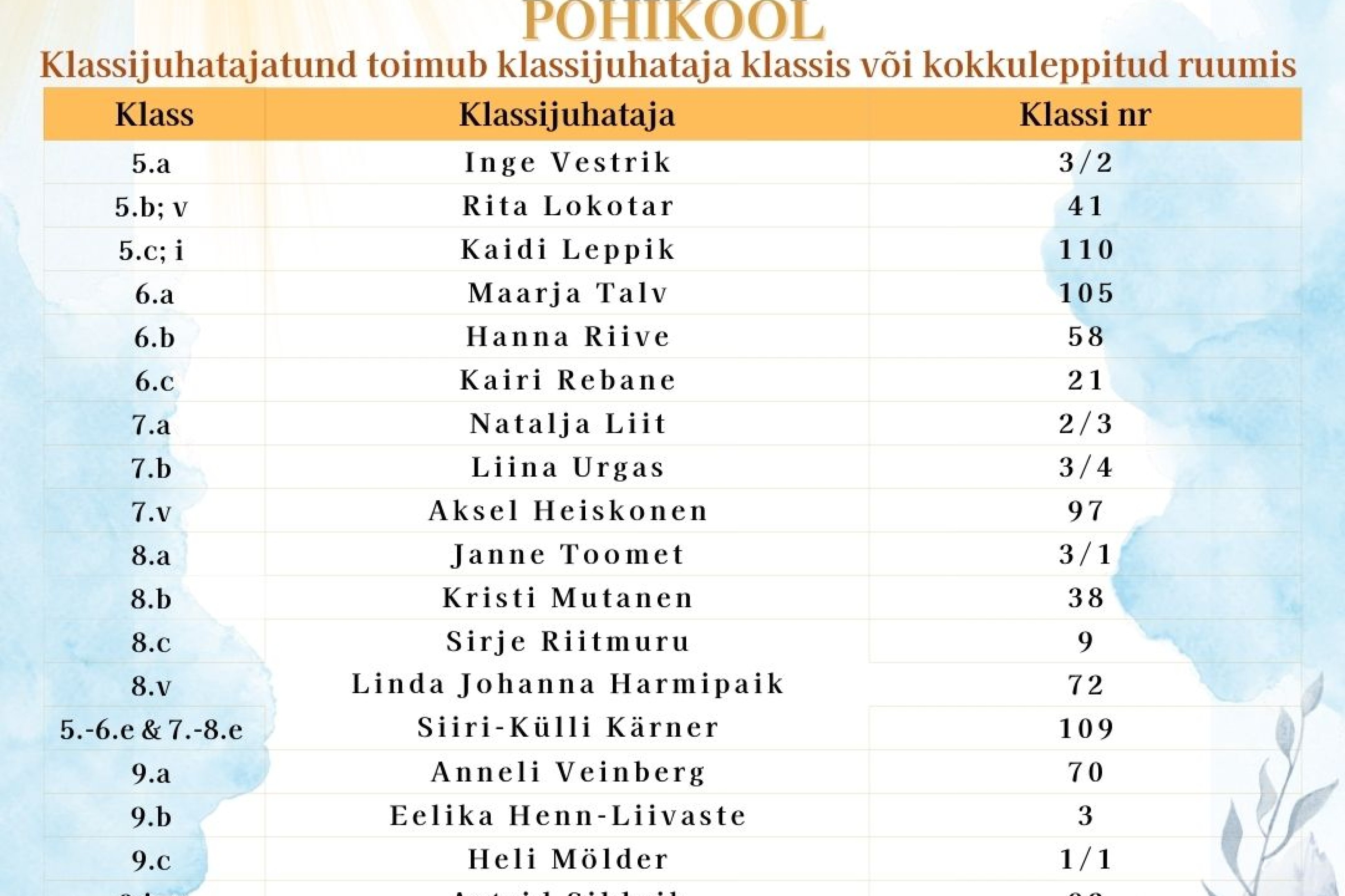 Klassijuhatajatund toimub klassijuhataja klassis või kokkuleppitud ruumis