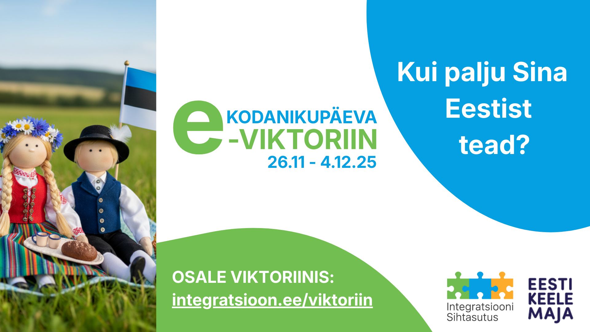 Integratsiooni Sihtasutus (Eesti Keele Maja) kutsub kõiki huvilisi osalema 2025. aasta kodanikupäeva e-viktoriinil. See on suurepärane võimalus proovile panna oma teadmised Eesti ühiskonnast, kultuurist ja ajaloost.
