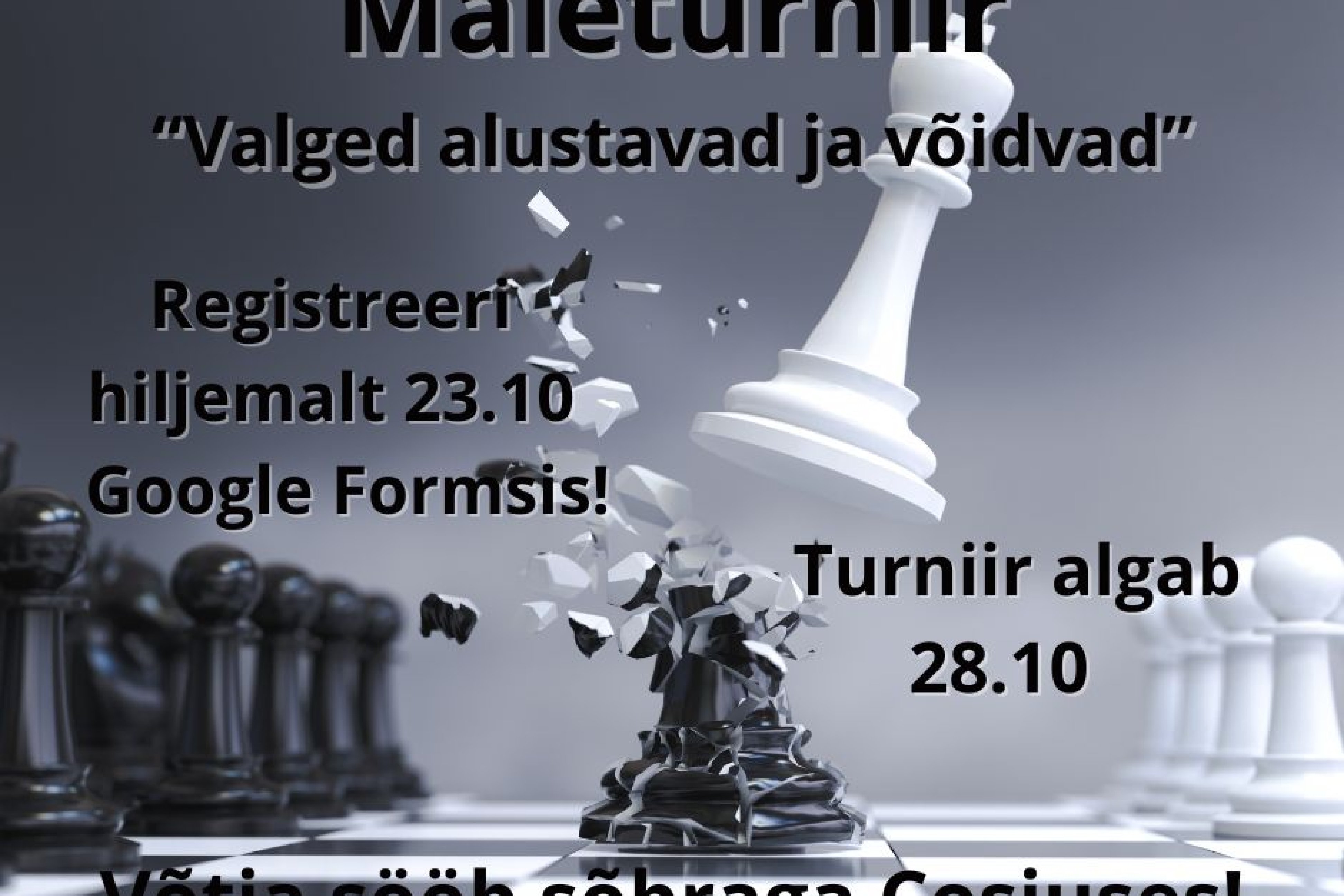 Kose Gümnaasiumis on tulekul maleturniir “Valged alustavad ja võidavad”, mille võitja saab koos sõbraga nautida õhtusööki Cosiuse pubis.
