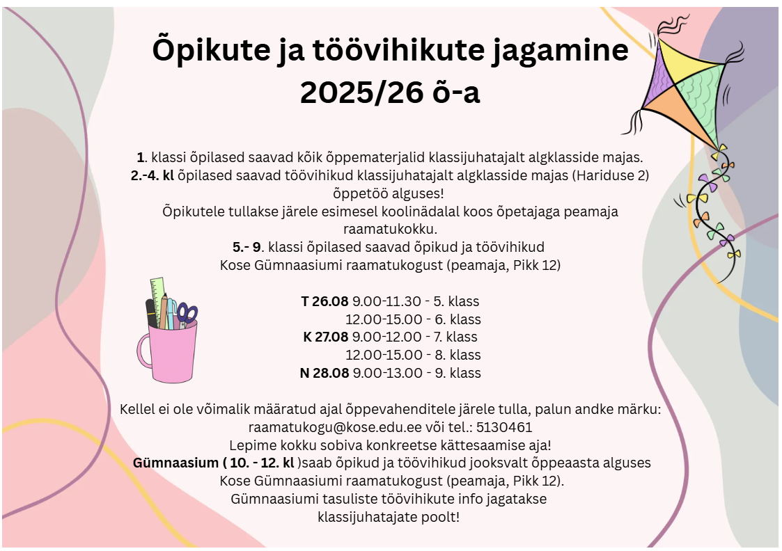 raamatukogu@kose.edu.ee või tel.: 5130461