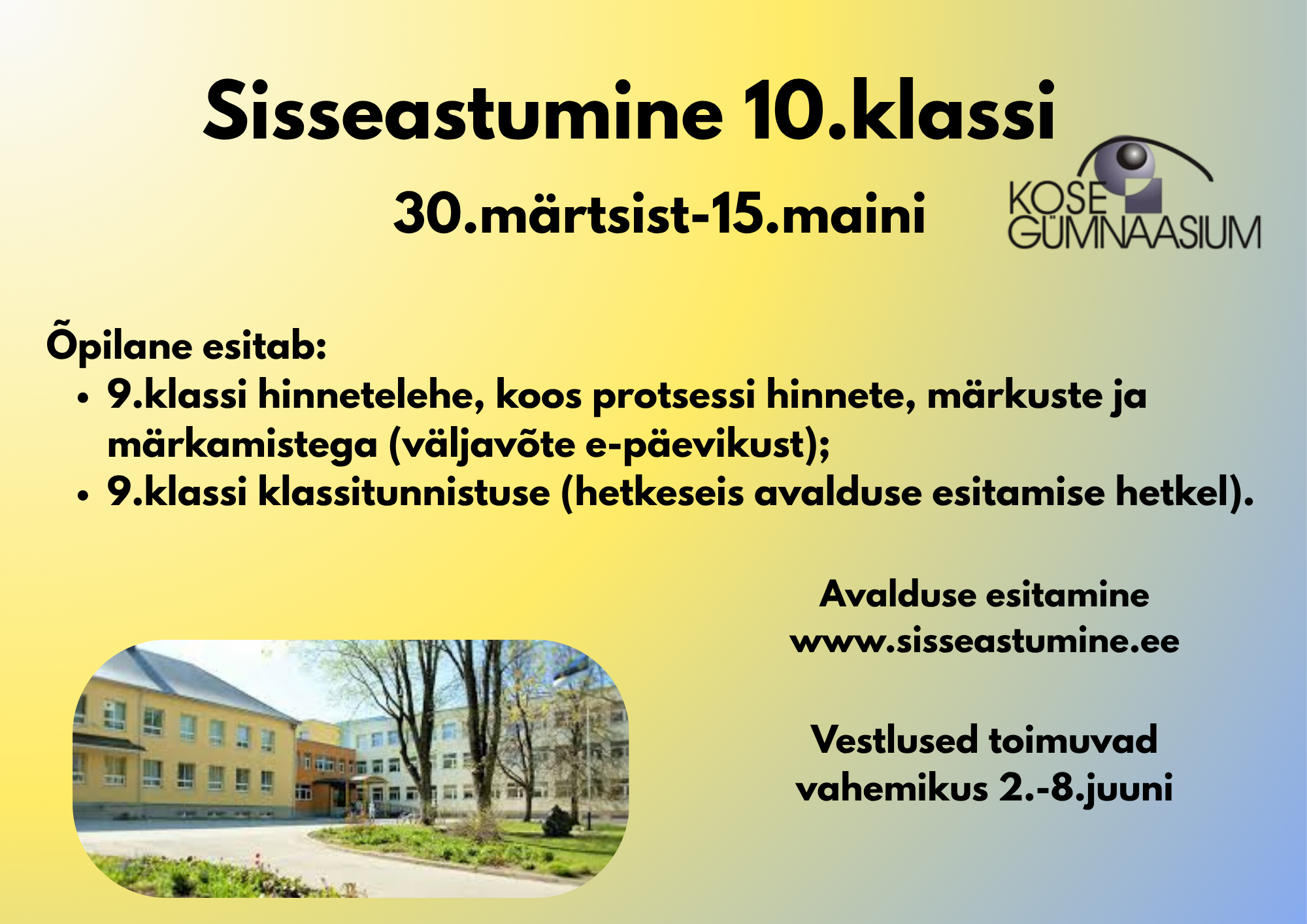 Kose Gümnaasium kutsub kandideerima 10. klassi.